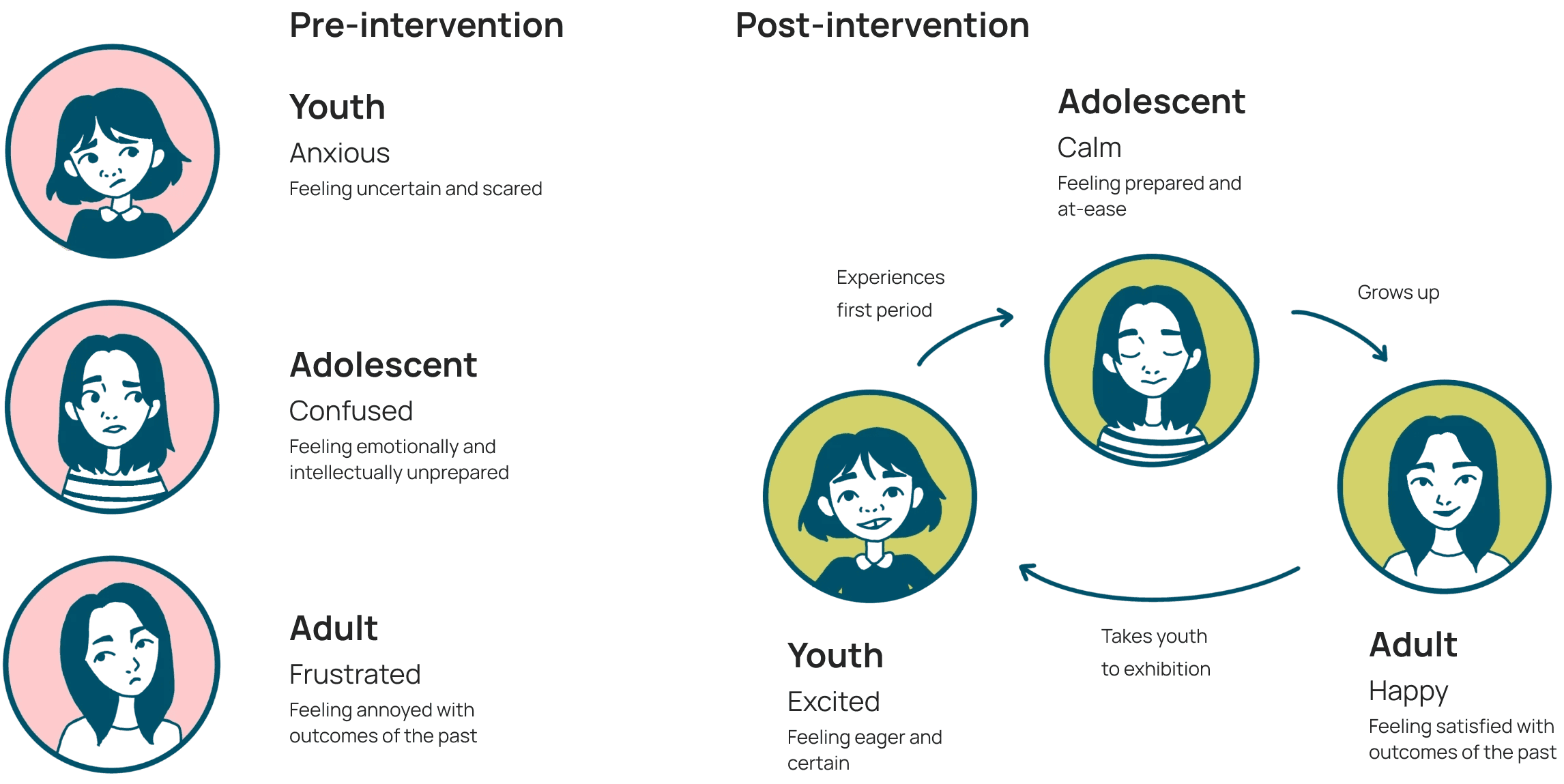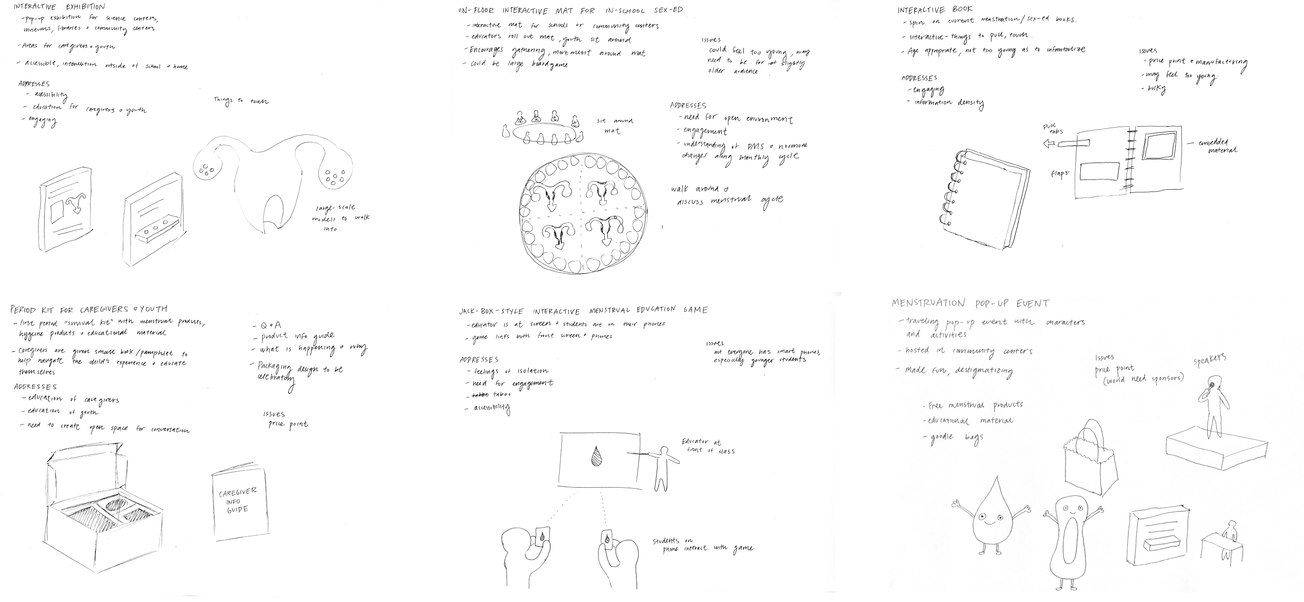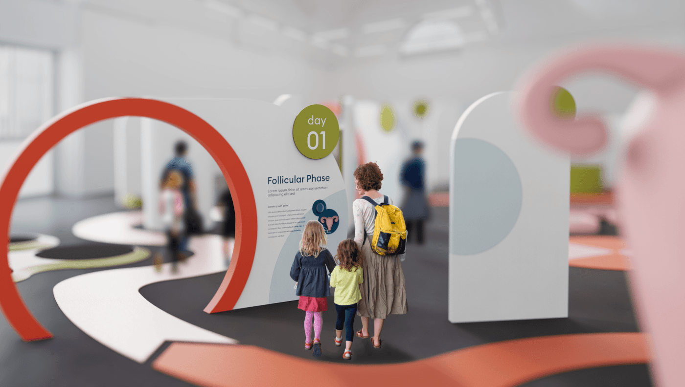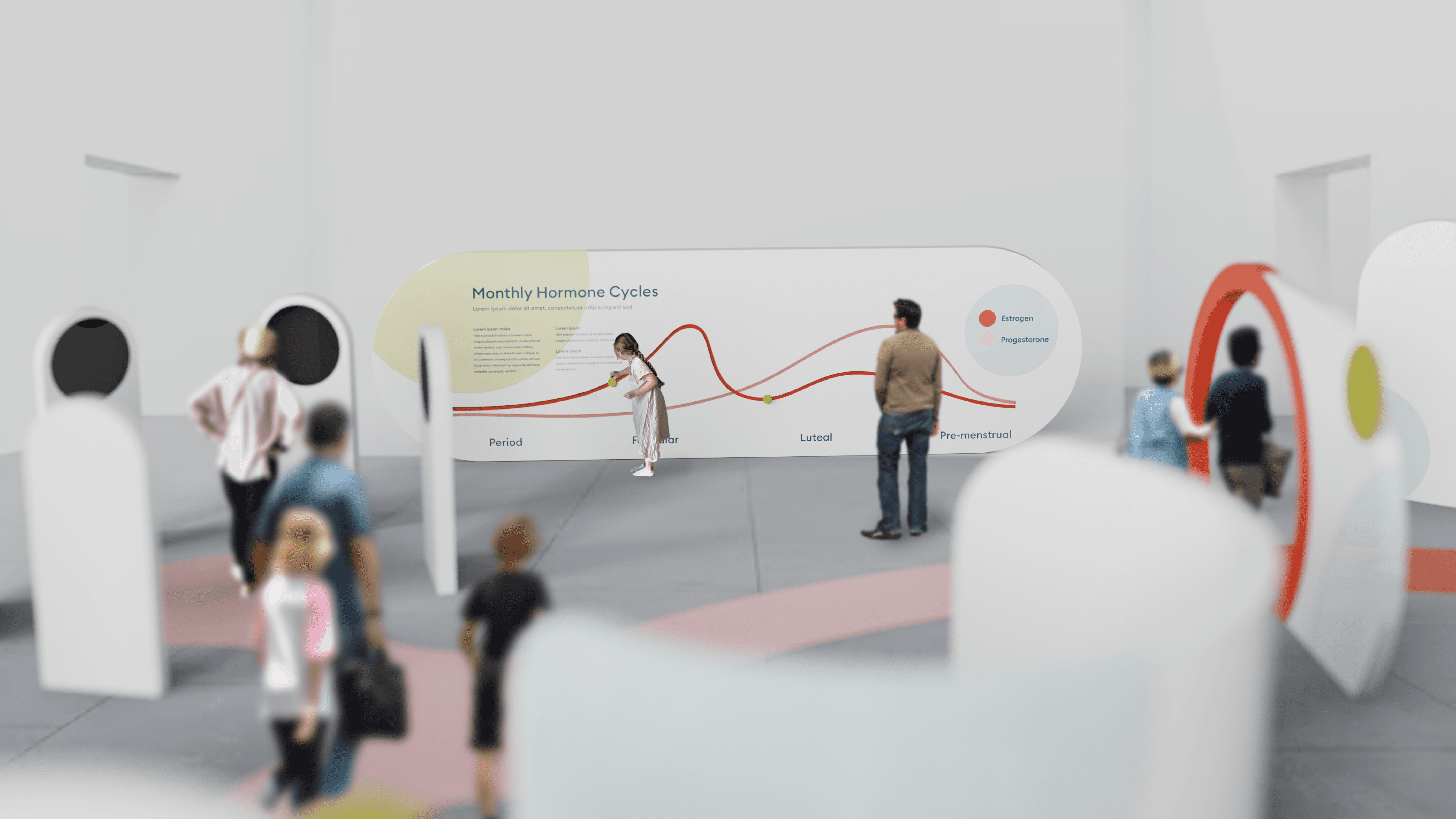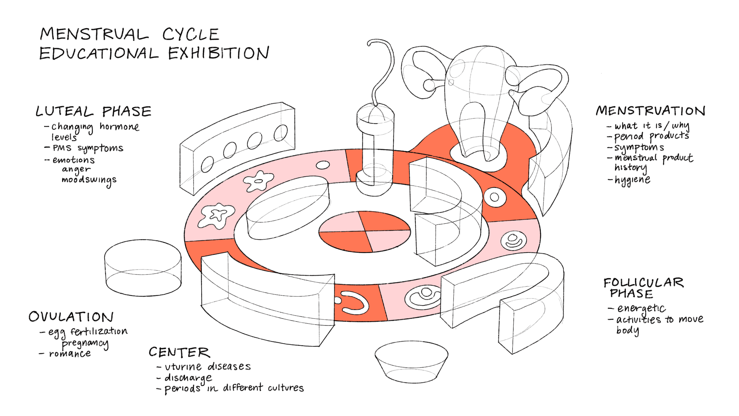 An interactive, traveling exhibition about the menstrual cycle. The exhibition works to provide comprehensive menstrual education in a public environment to decrease stigma and create comradery among youth.
