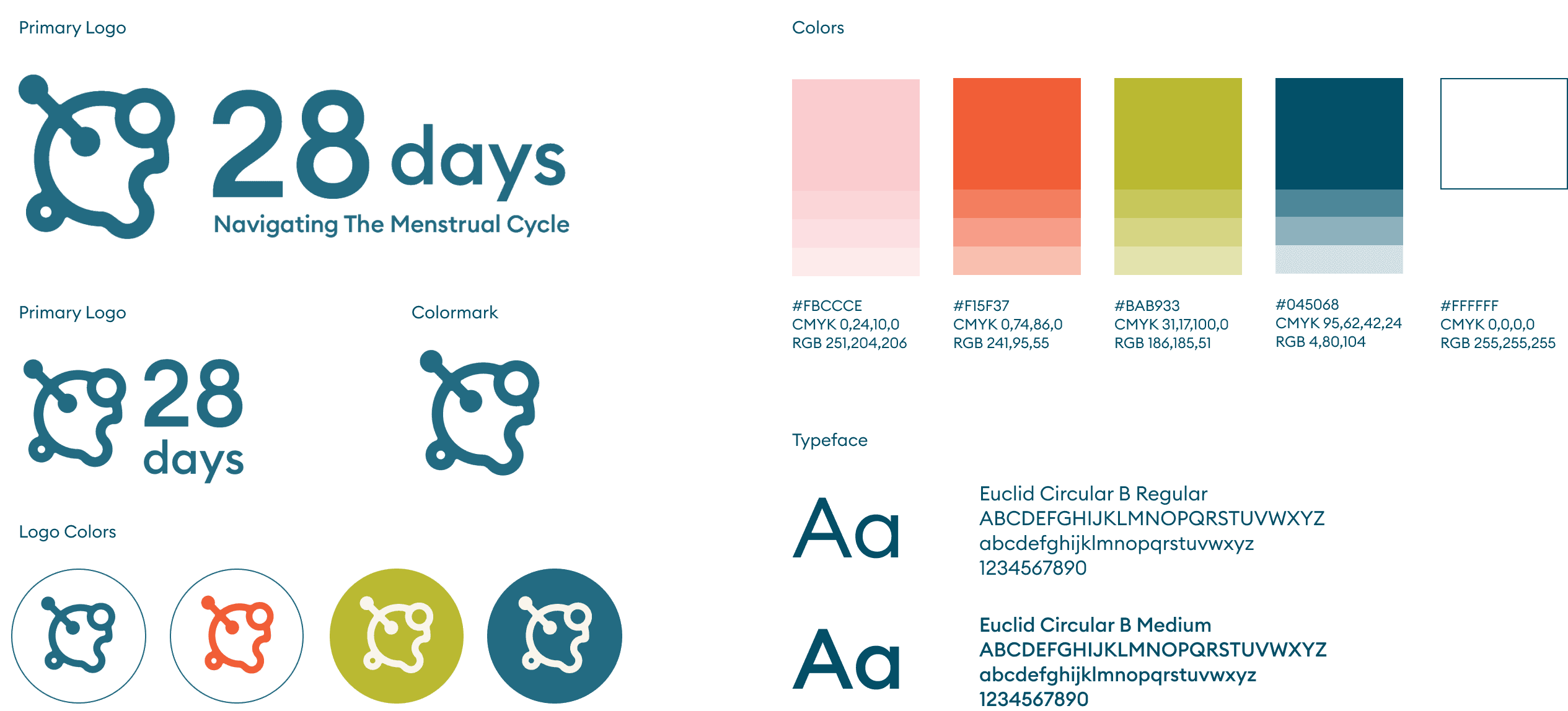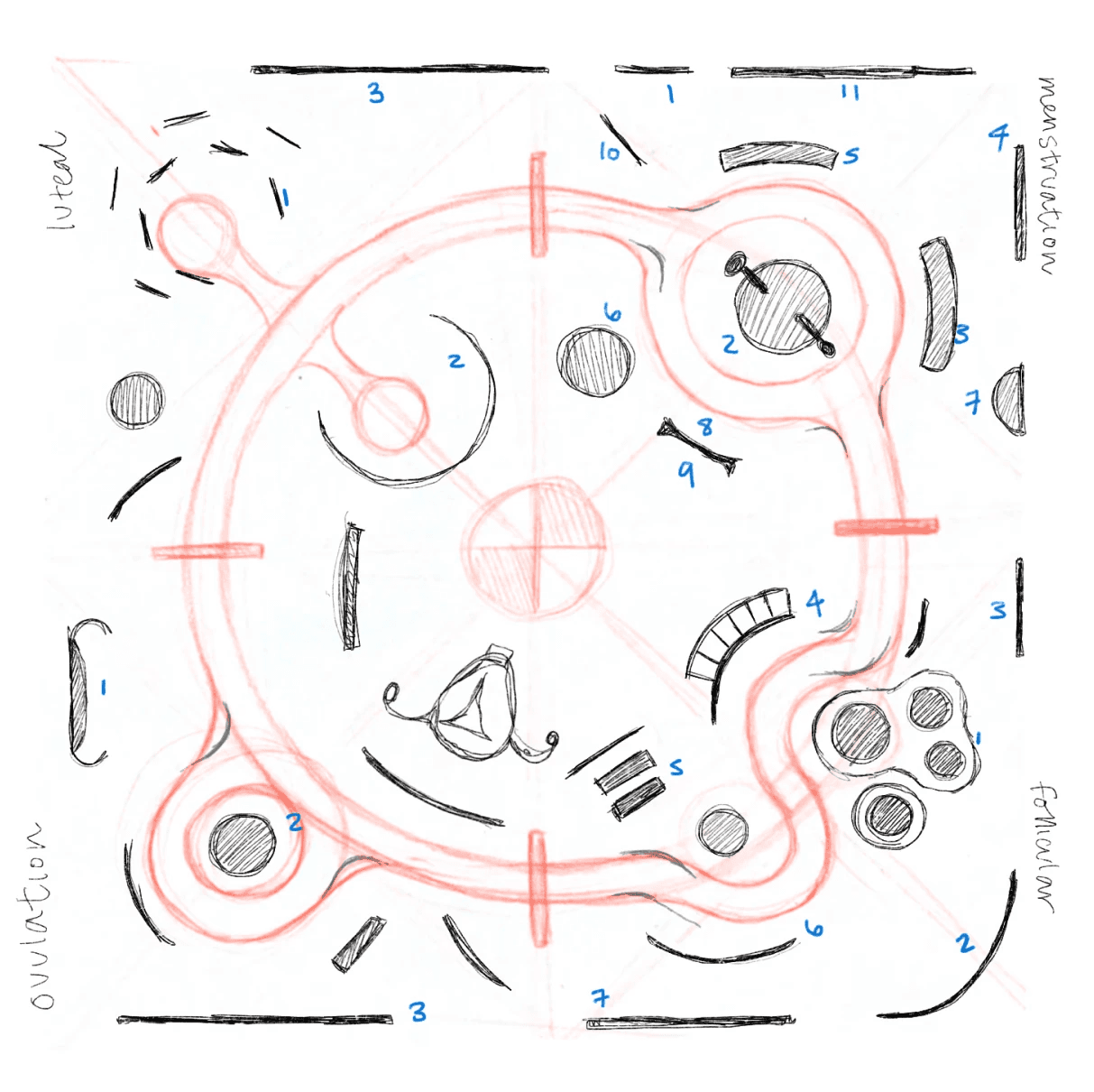 Users navigate around the circular path to experience interactions related to each part of the menstrual cycle. They start at Day 1 (Follicular Phase) and end on Day 28 (Menstruation).