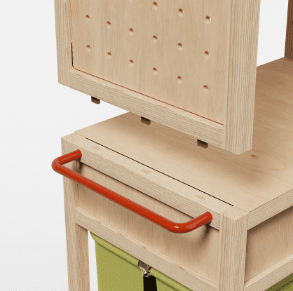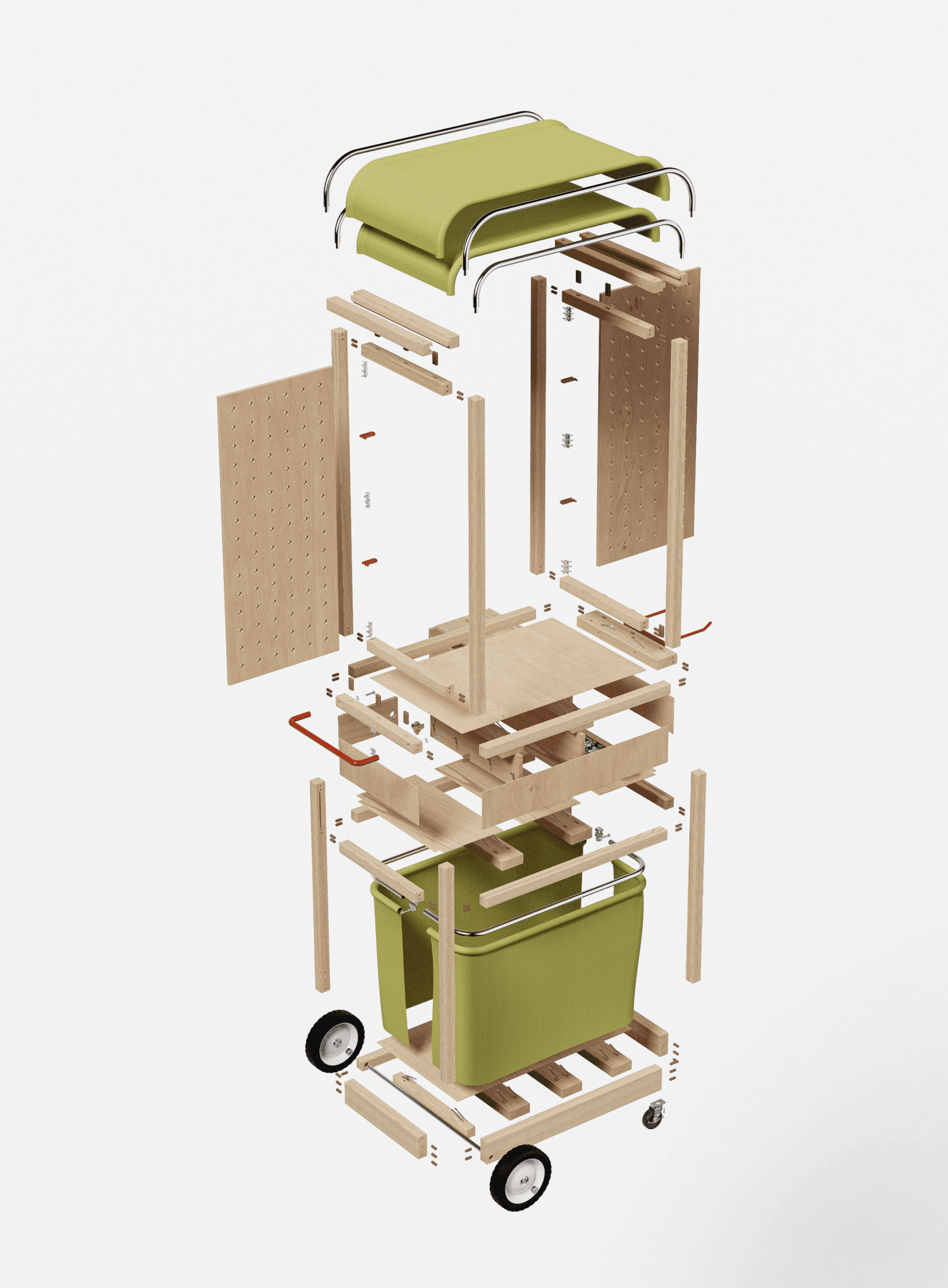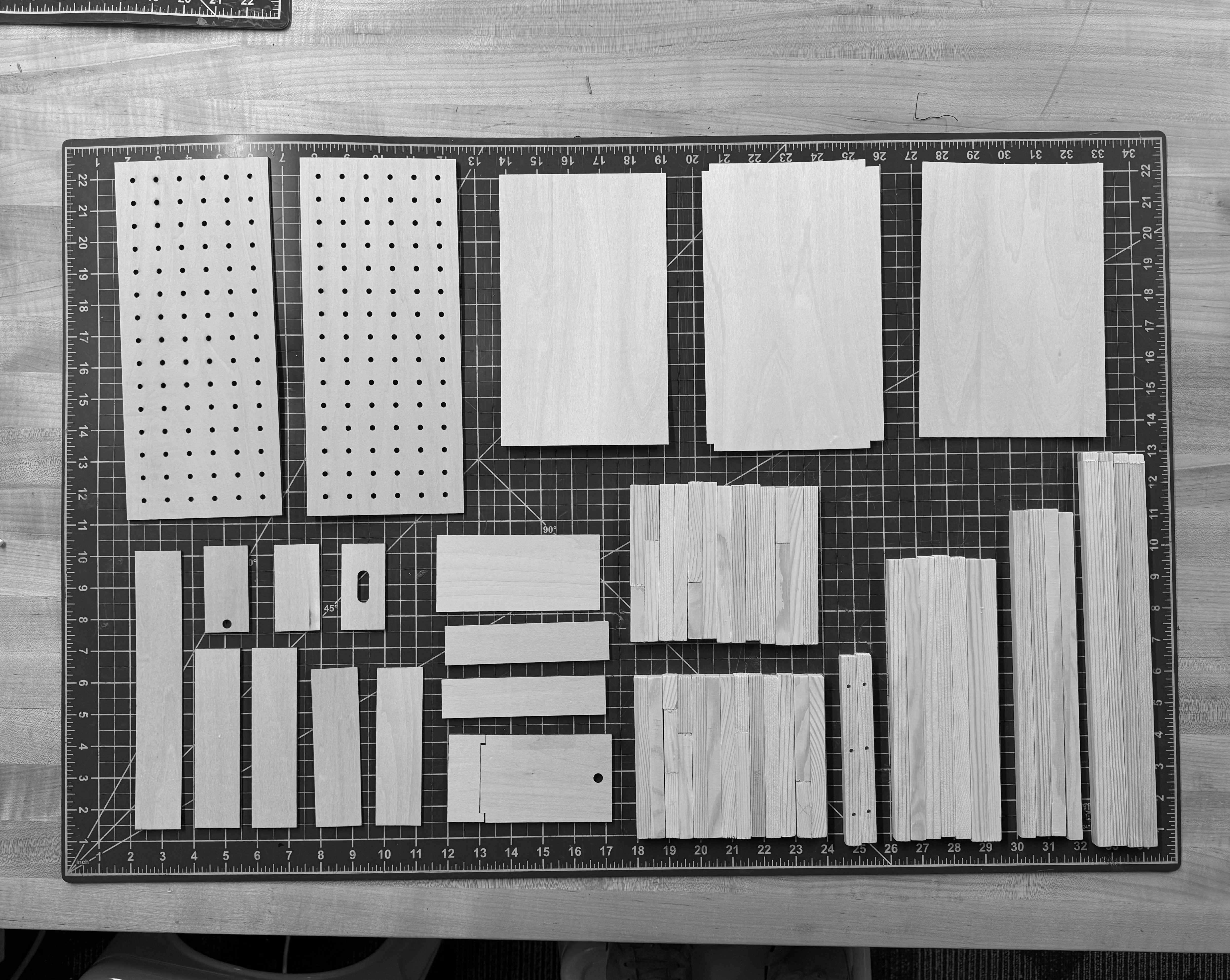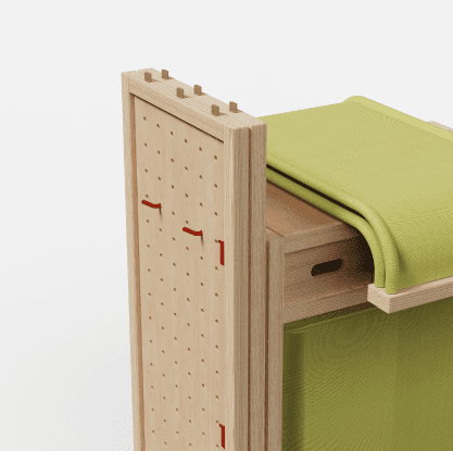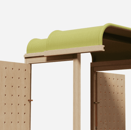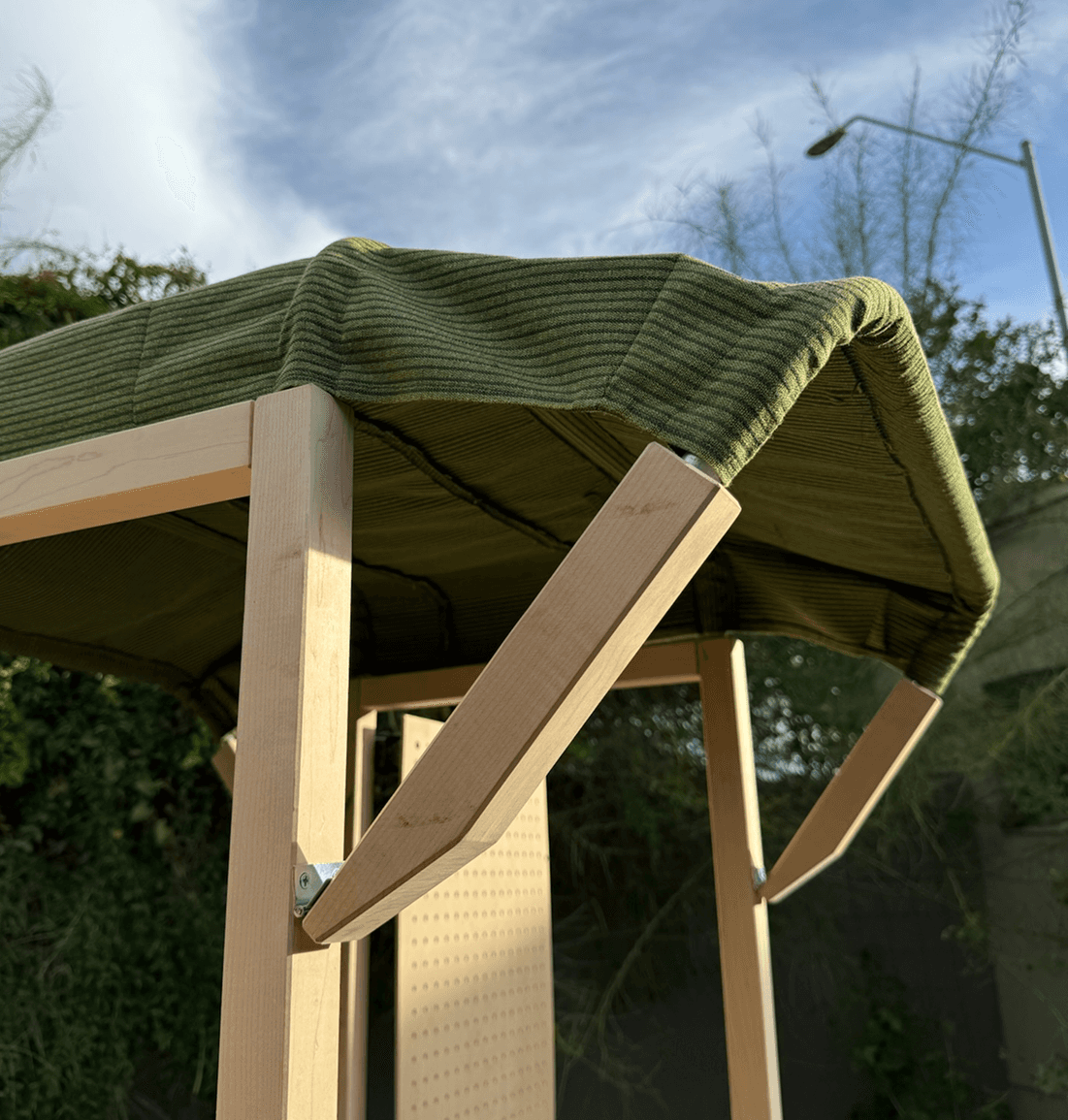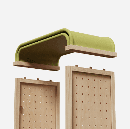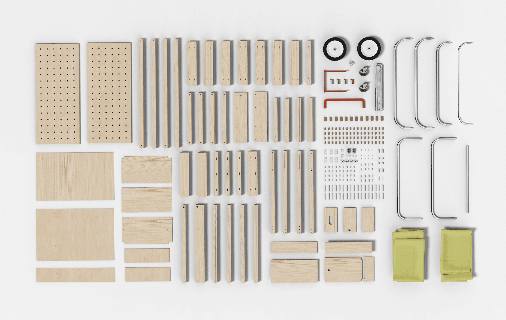 Produced with simple manufacturing methods and standardized wood sizes, allowing users to construct on their own through a flat-pack shipment or with purchased plans.