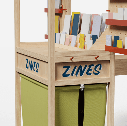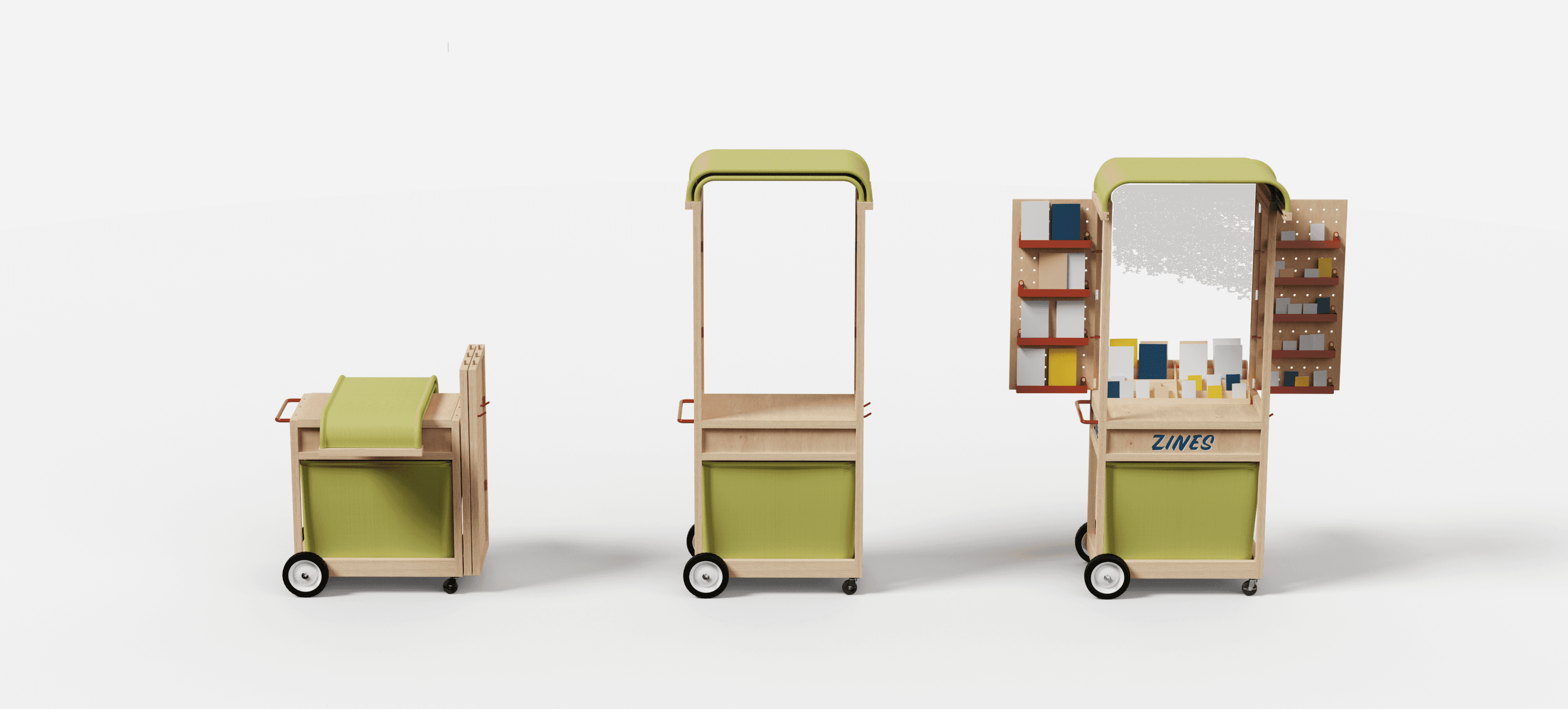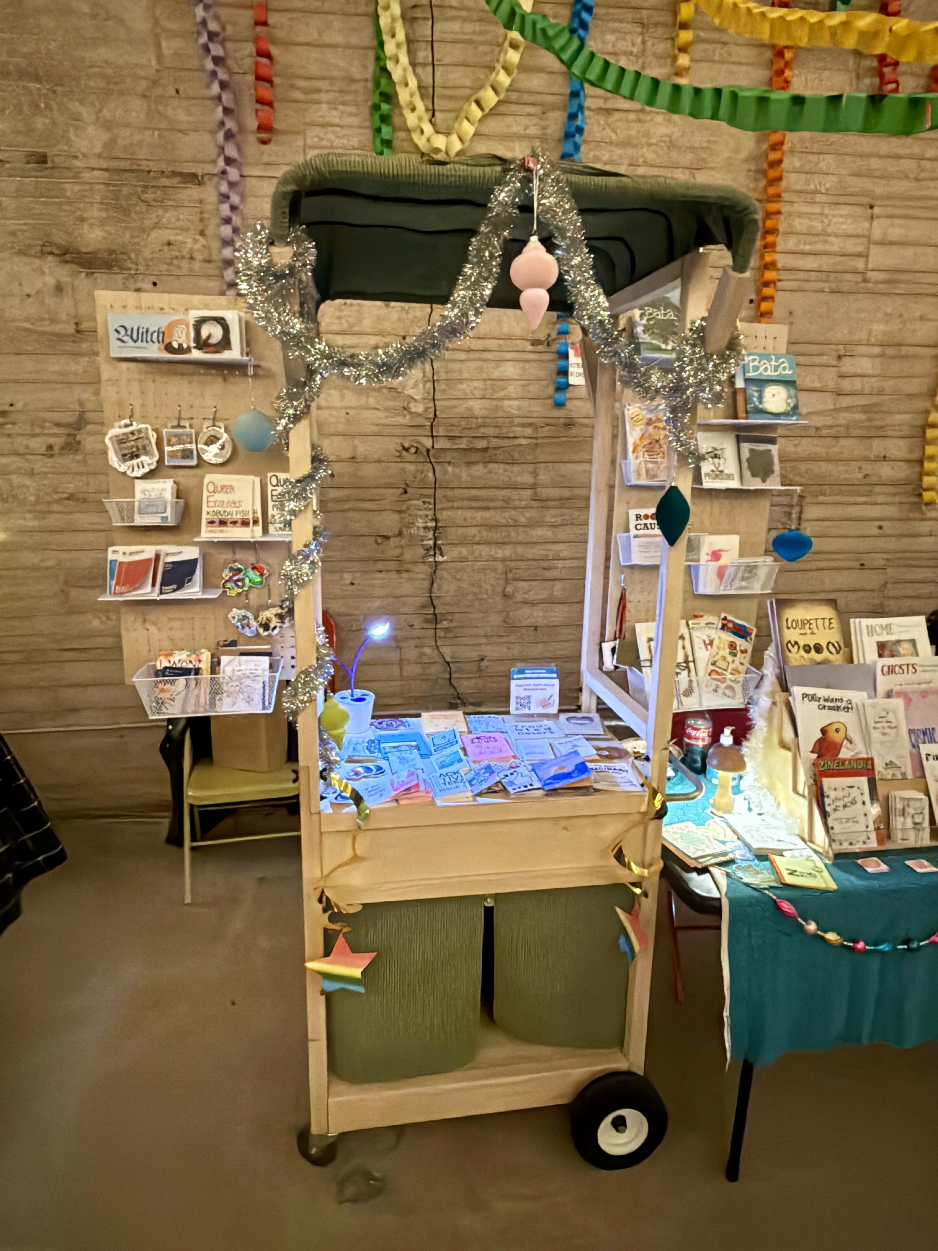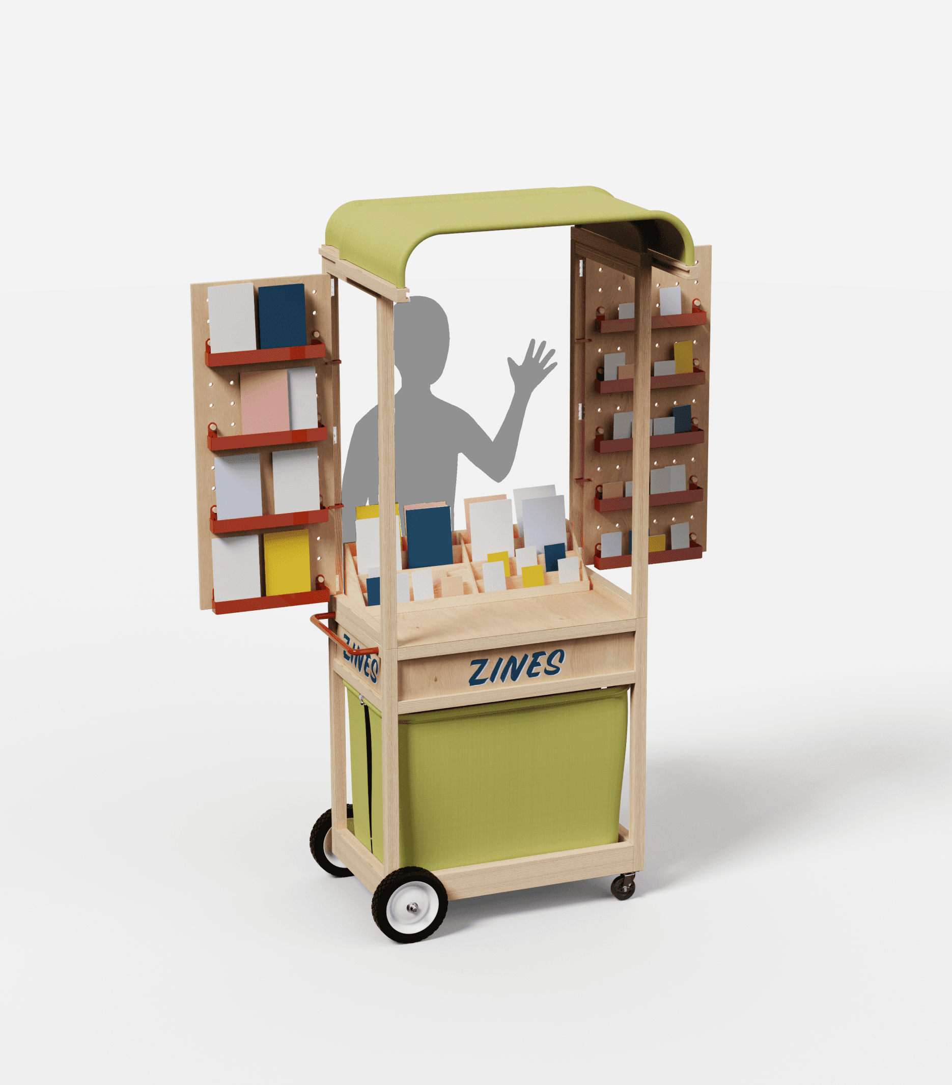 The cart debuted in July 2025 and is currently being used to sell and display zines at various art festivals and community events.