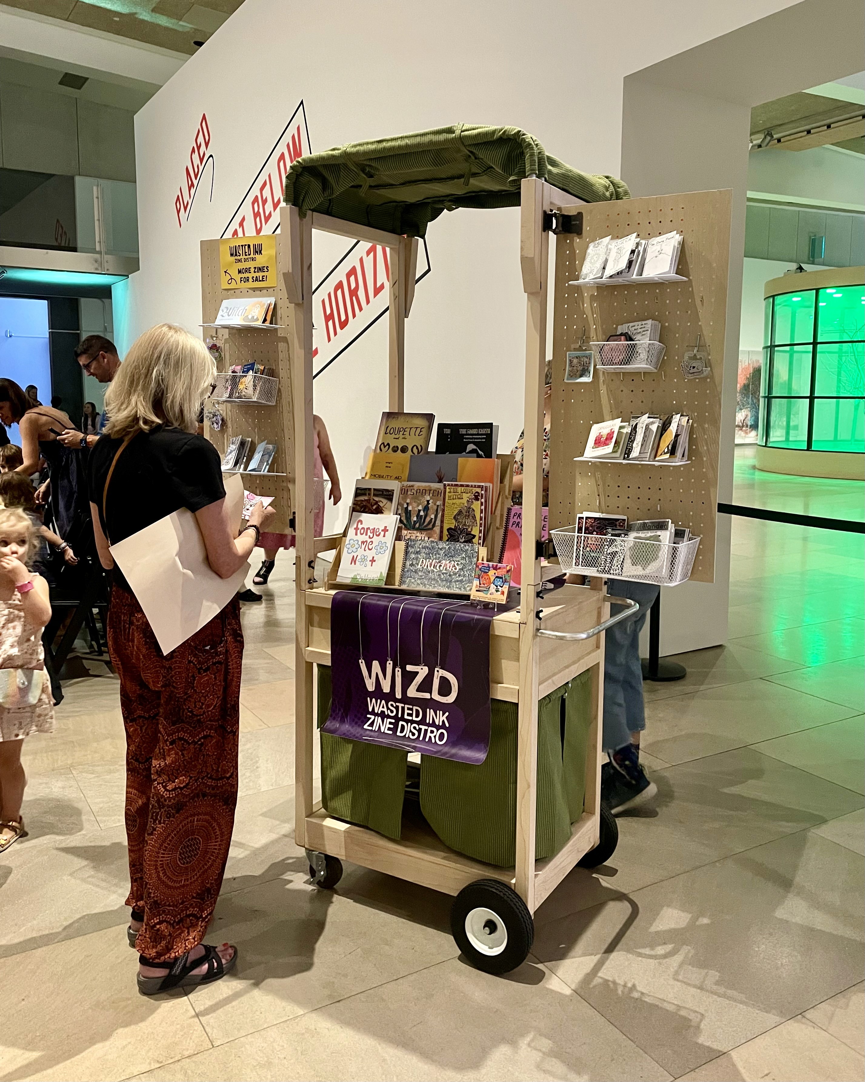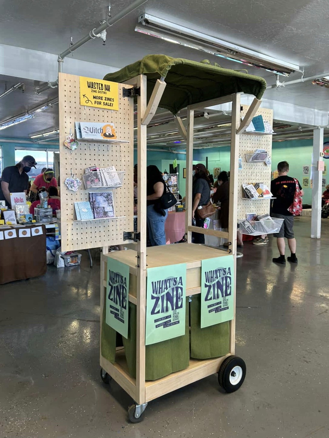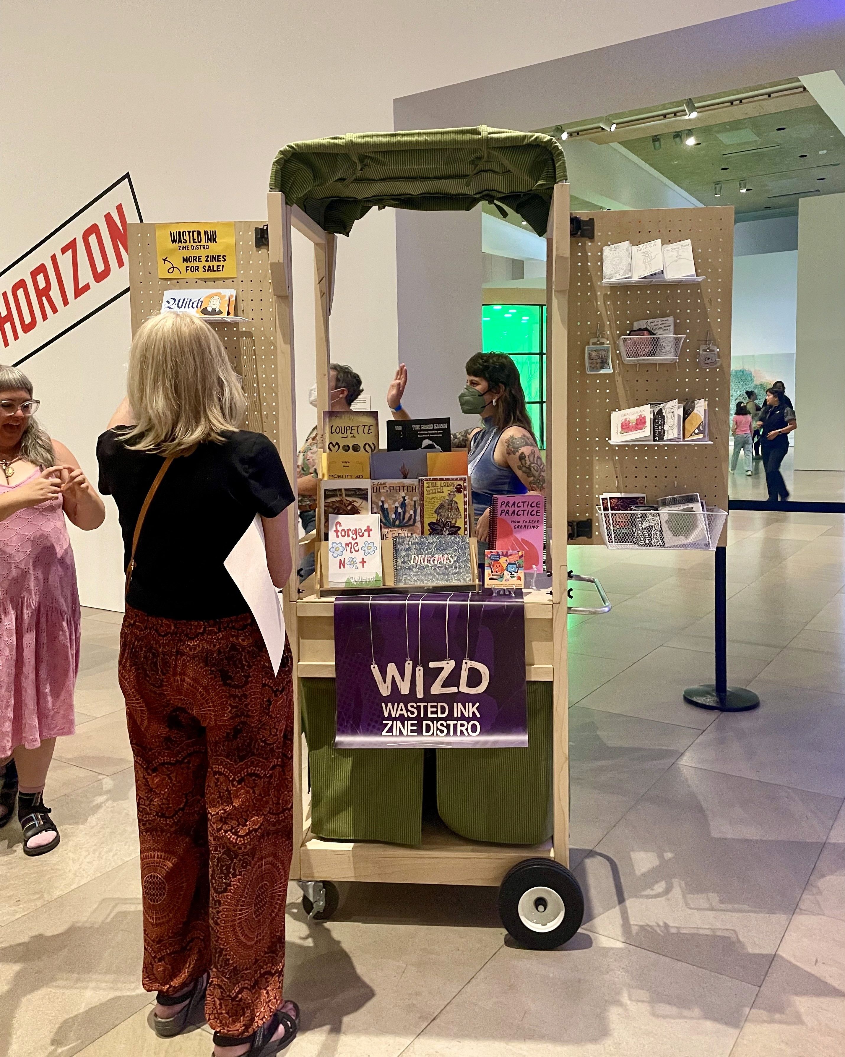 The cart was donated to Wasted Ink Zine Distro, a distribution center for zines (self-published booklets), dedicated to uplifting voices of historically marginalized creators.