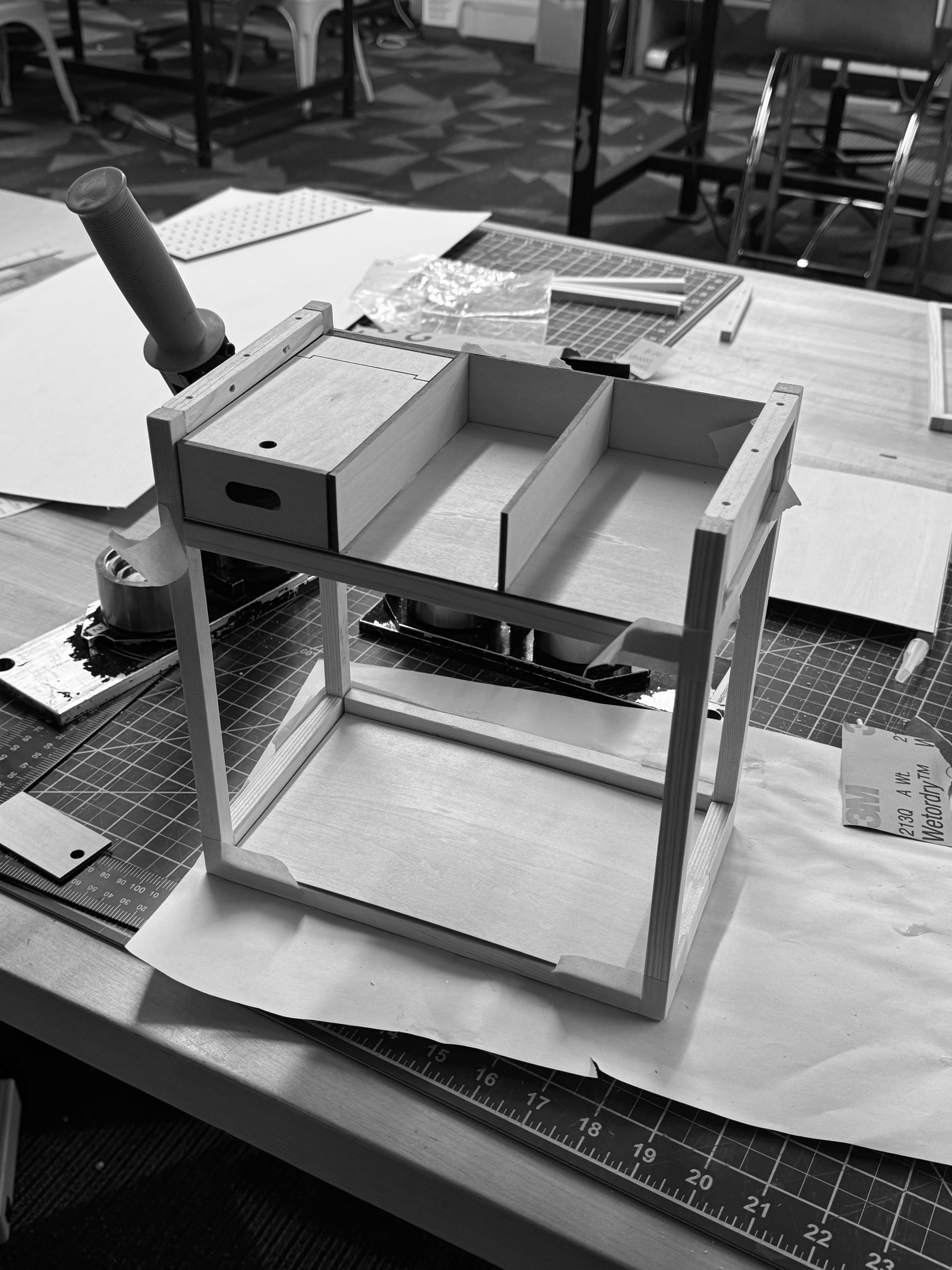 The full scale model was slightly modified from the conceptual model to incorporate off-the-shelf hardware and reduce points of failure.