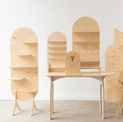 Design considerations include easy transportation, transformation, display setup, and modularity