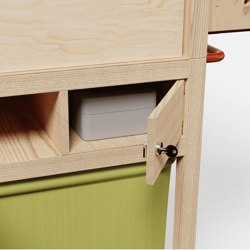 Features: Modular and custom components, pull-out shade, and a solid structure